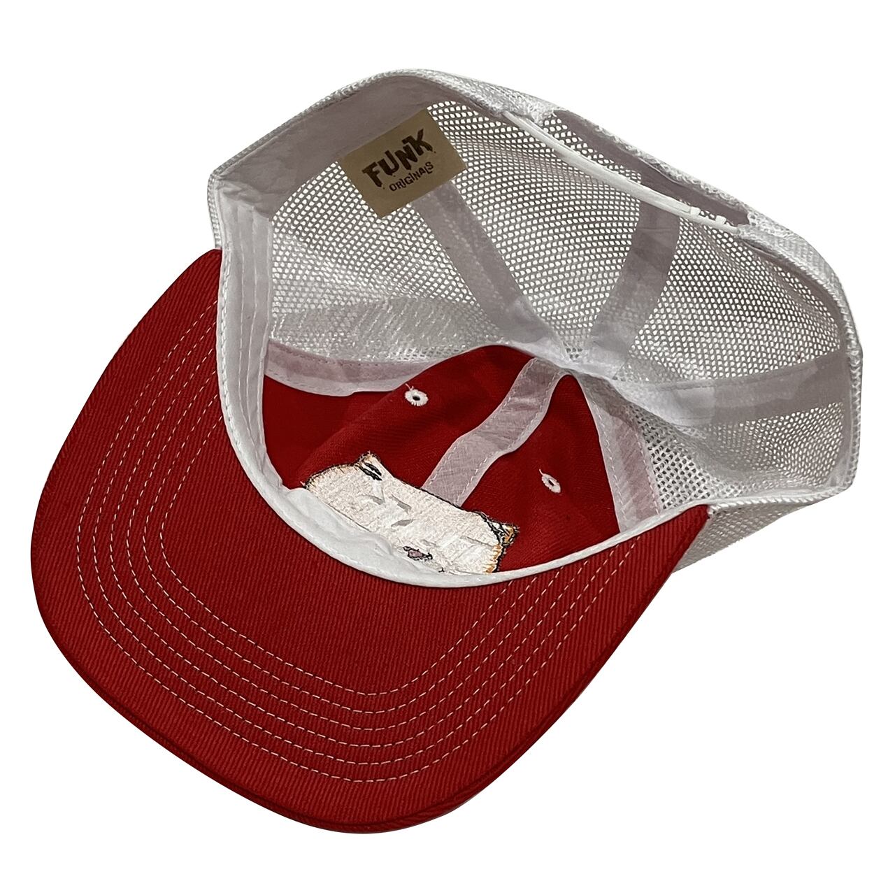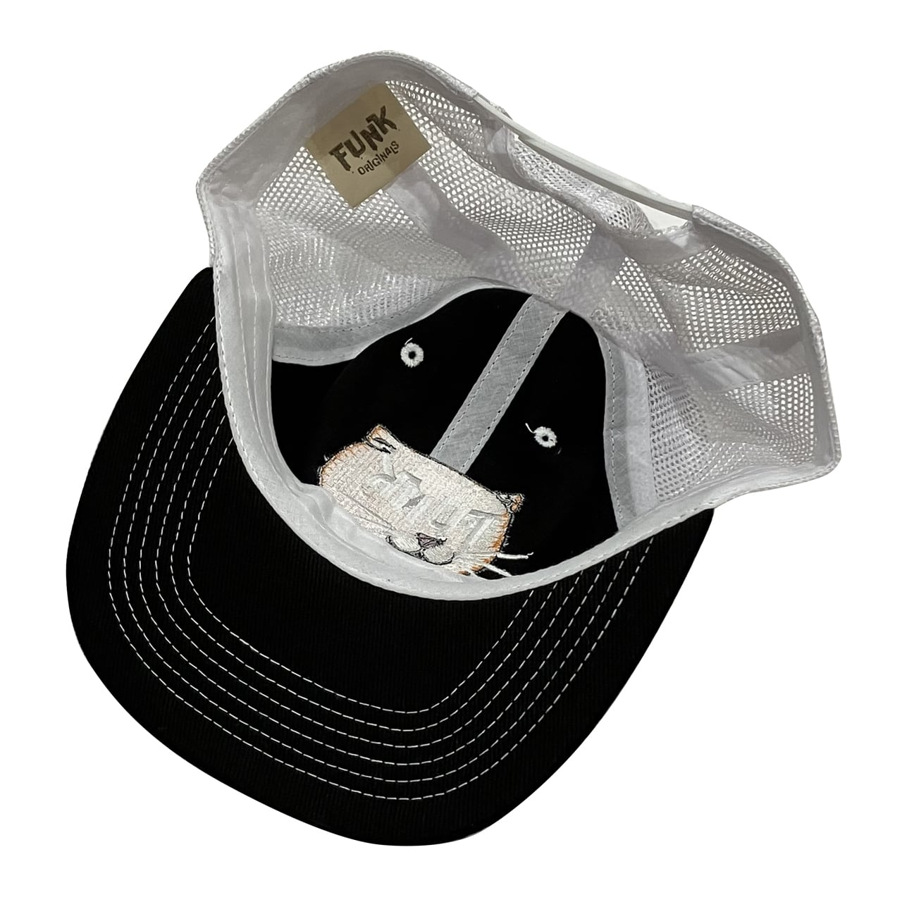 Cat logoを贅沢に刺繍したメッシュキャップ。 3色展開です! やや浅めの、珍しいサイズ感のメッシュキャップ。 ツバは6本ステッチ、スナップバックでサイズ調整が可能です。 綿60% ポリエステル40% / 6パネル 高さ:12cm つば長さ:7cm つば幅:18cm 頭周り (最小 - 最大):約56.5- 61cm
