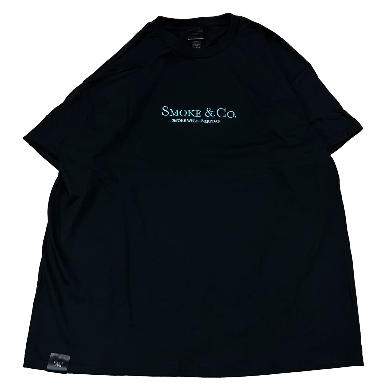 SMOKE & Co. logoが贅沢に大きく刺繍されたT-shirts。 こちらのTeeには裾部分に【Have Fun】タグを付けました。 USサイズ展開の為、日本のBODYよりややルーズな着用感となっております。 着丈79cm.身幅61cm.裄丈53cm 胸:刺繍 ●SIZE:XL ONLY ●COLOR:BLACK ●厚さ : 6.0 oz ●組成 : 綿100%