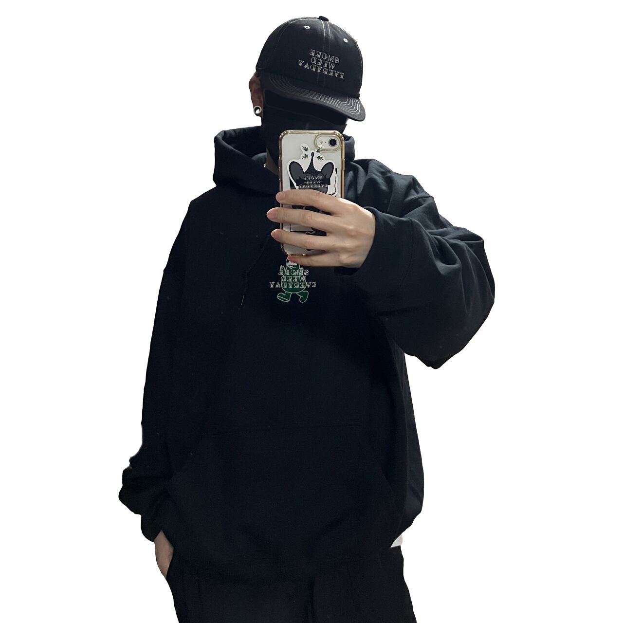 フードが立つタイプのHoodieのため