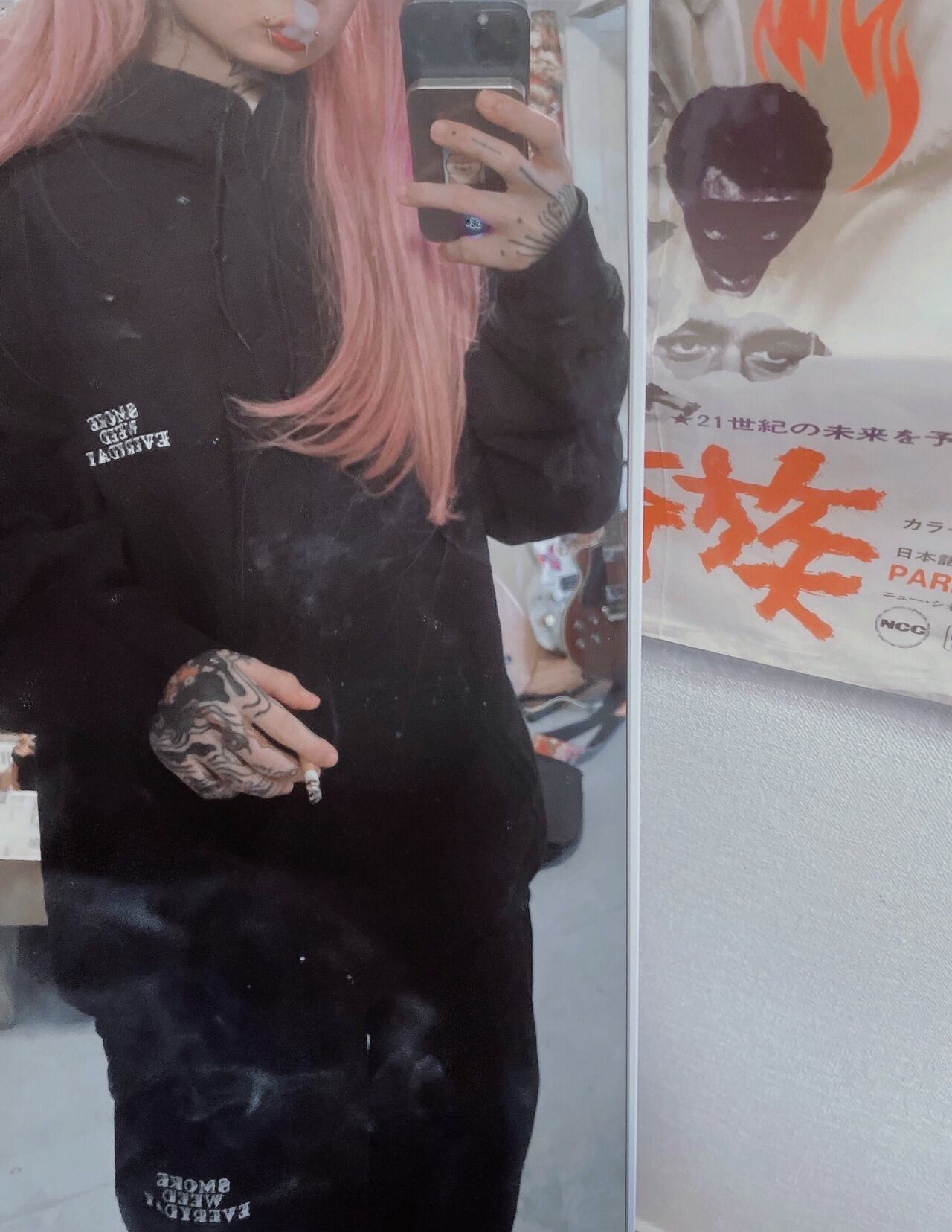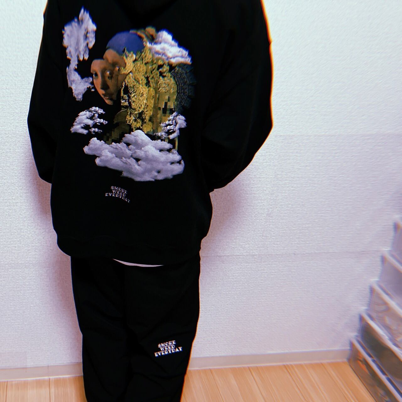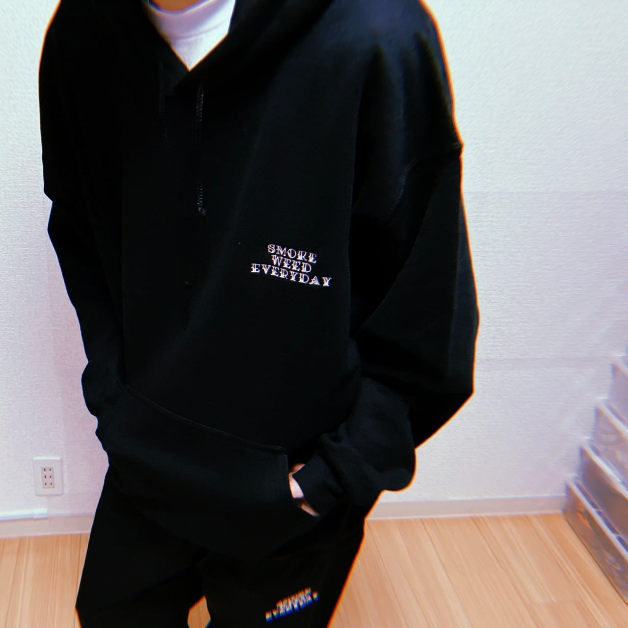 SMOKE WEED EVERYDAYのlogoが刺繍されたトラックパンツです。