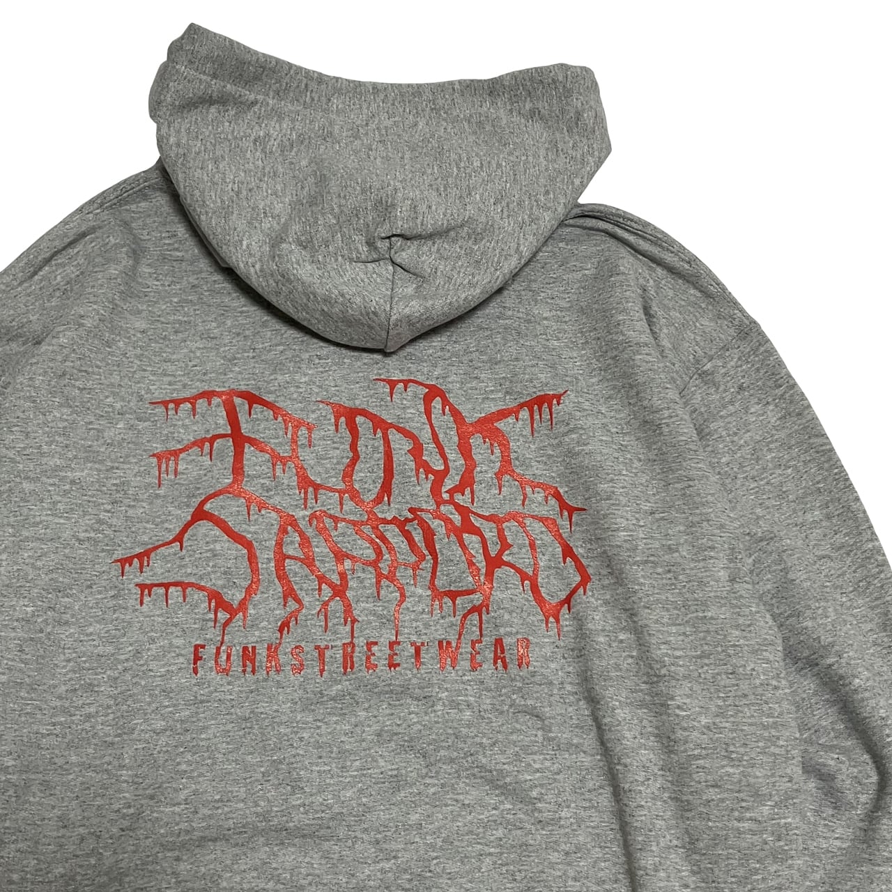 FUNK originalsより Cracked logo Hoodieが入荷しました。 同デザインのCAPとセットでも是非。 Mサイズ:着丈65cm,身幅57cm,肩幅56.5cm,袖丈59cm Lサイズ:着丈68cm,身幅61cm,肩幅61cm,袖丈59cm XLサイズ:着丈71cm,身幅65.5cm,肩幅66cm,袖丈59cm 厚さ : 8.0 oz(270g/㎡) 組成 : 綿50%、ポリエステル50% 裏起毛