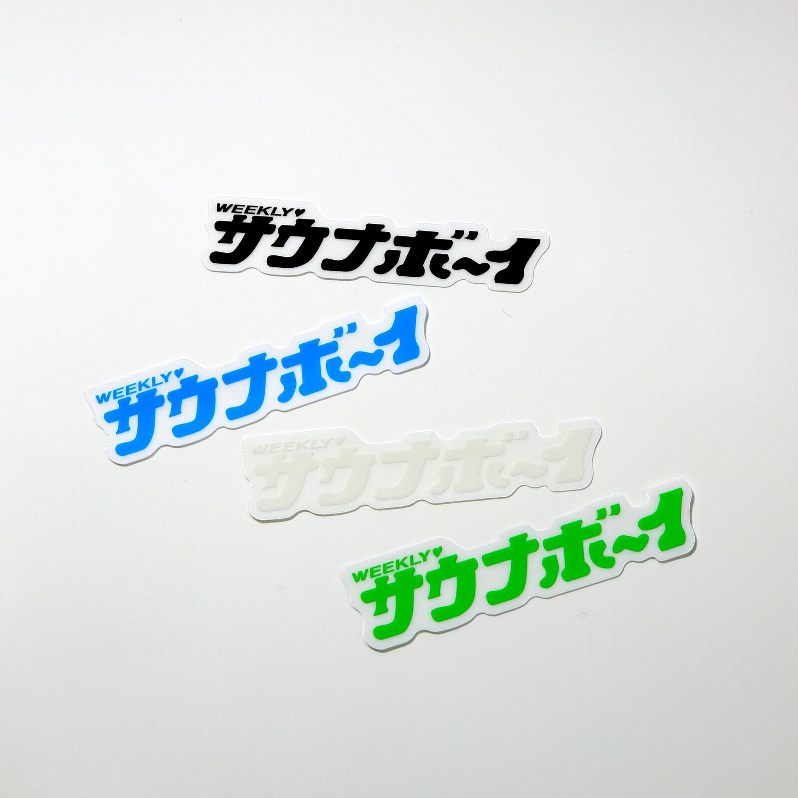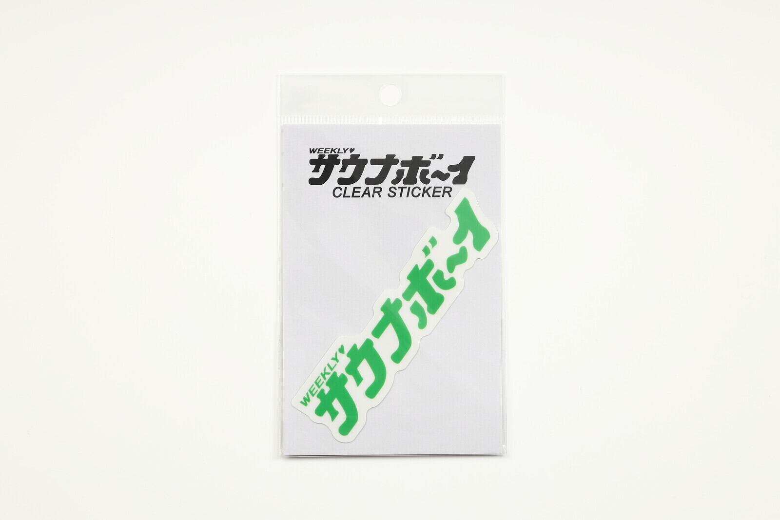 サウナボーイのロゴがプリントされたクリアステッカー。 素材:PET素材 カラー:ブラック、ブルー、ホワイト、グリーン サイズ:約2.5cm×約10cm