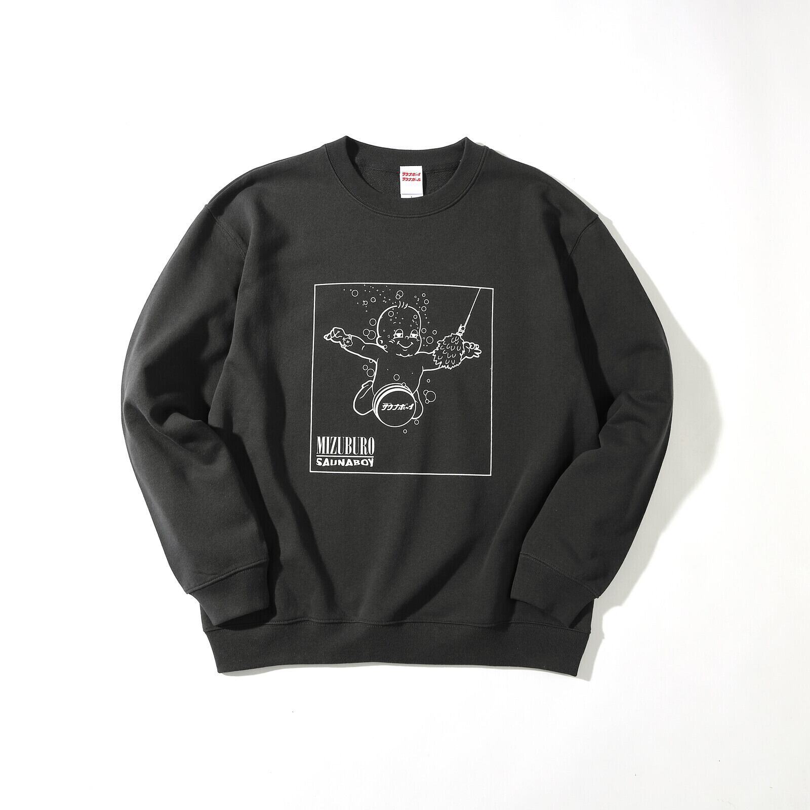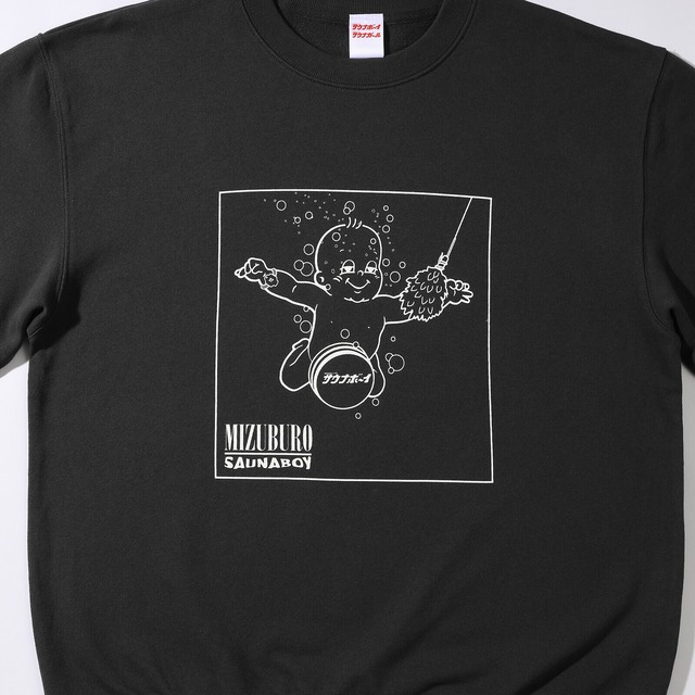 90sに世界を席巻した伝説的アルバムのジャケットがモチーフとなった、赤ちゃんが水風呂に入るグラフィックが可愛いらしいスウェット。 素材:綿100% カラー:アッシュ、スミクロ サイズ :M〜XL展開 M 着丈約68cm、身幅約55cm、袖丈約59cm、肩幅約51cm L 着丈約71cm、身幅約58cm、袖丈約60cm、肩幅約54cm XL 着丈約74cm、身幅約61cm、袖丈約61cm、肩幅約57cm