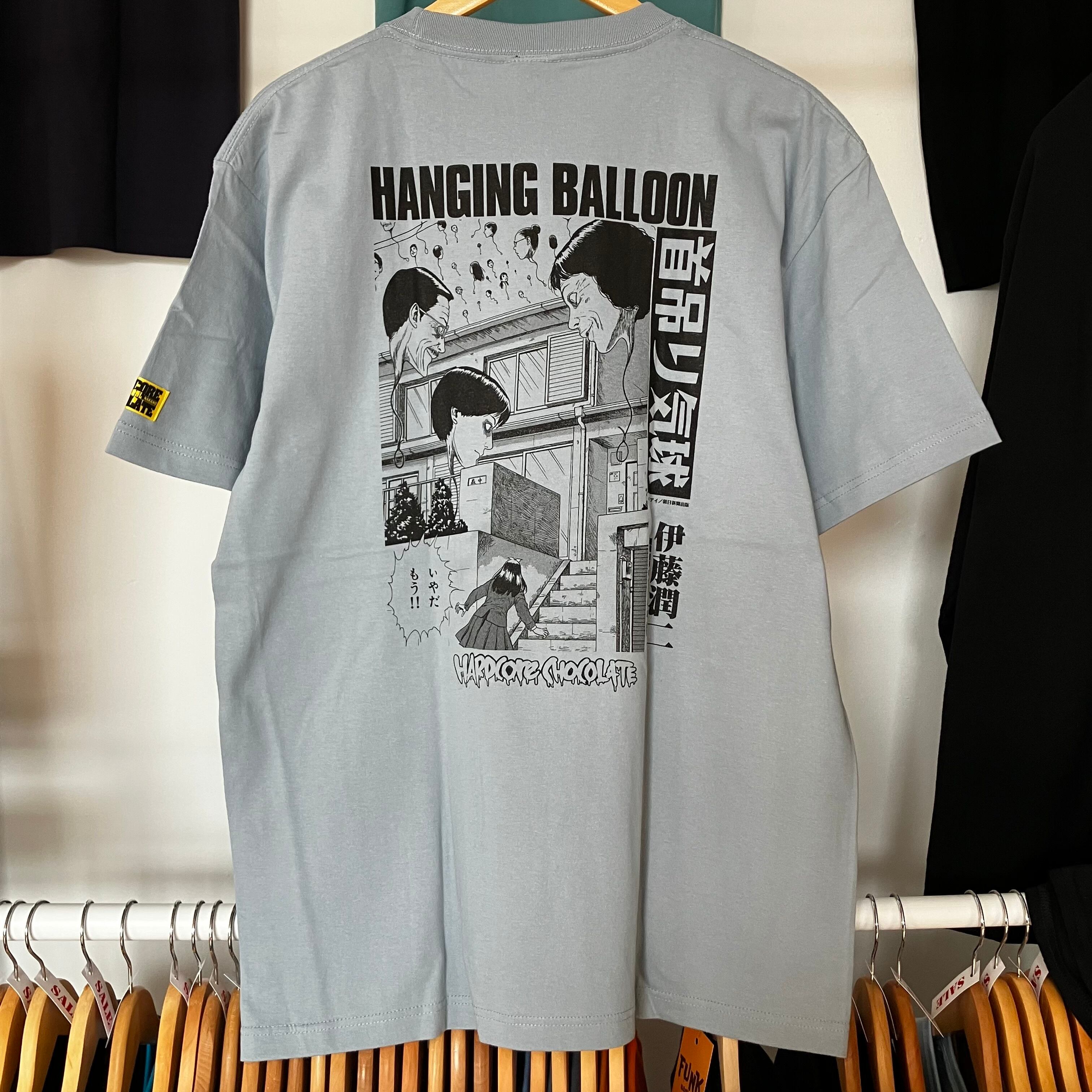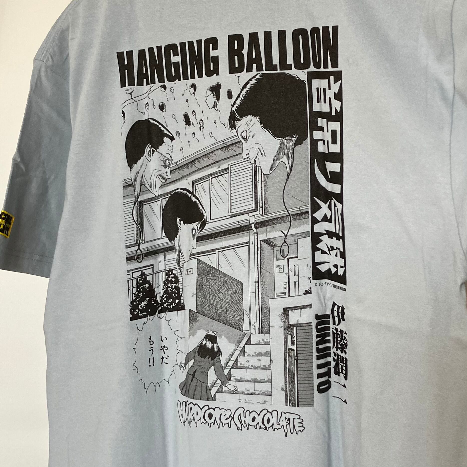 ハードコアチョコレートで実現した「首吊り気球」アパレルは、アシッドブルーのボディが淀んだ空を連想させて何とも心苦しい。